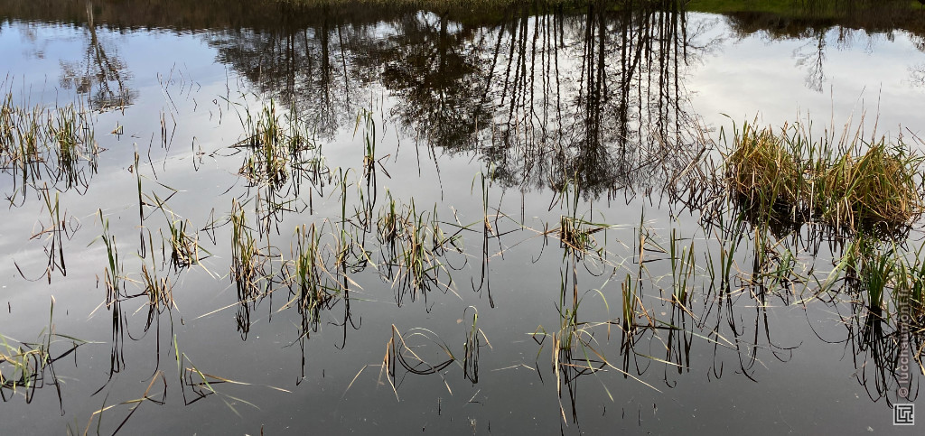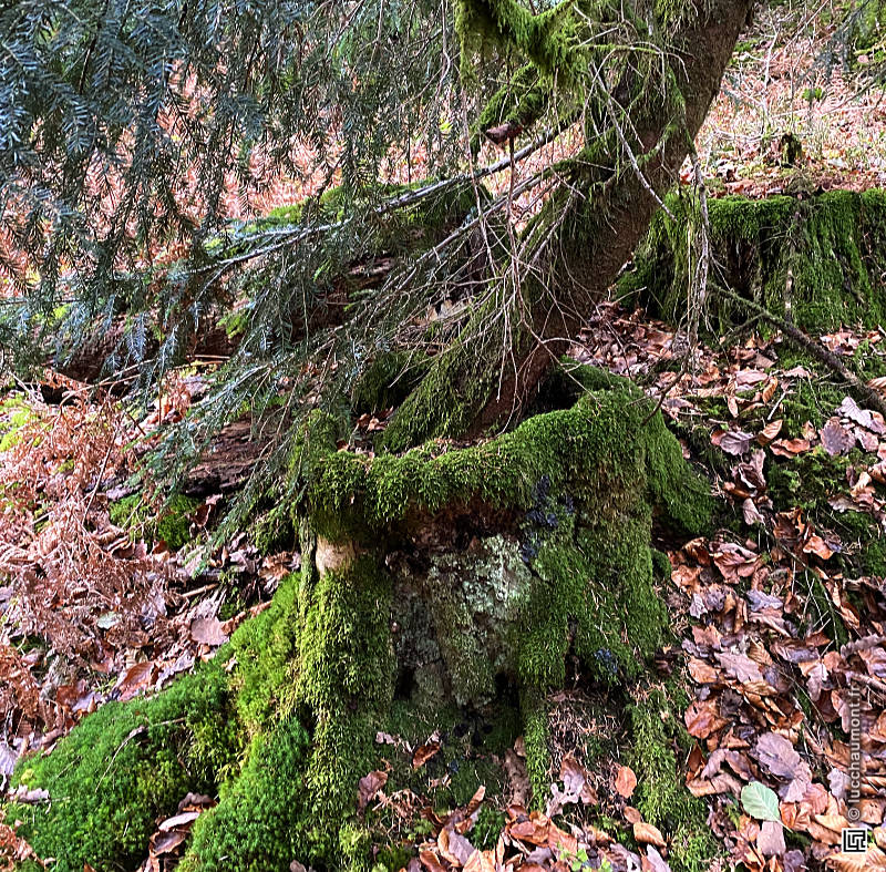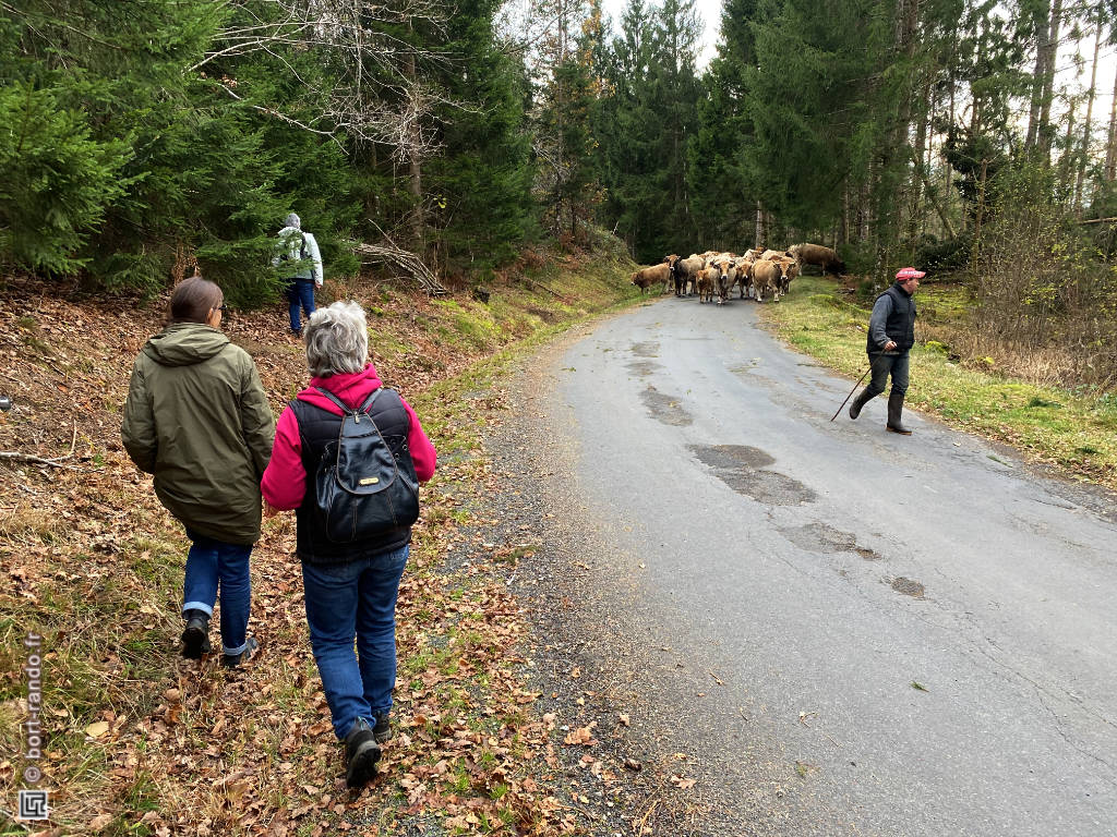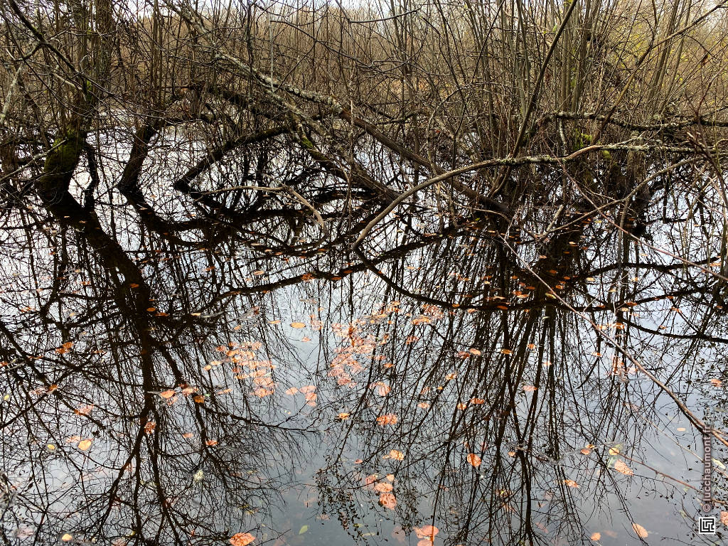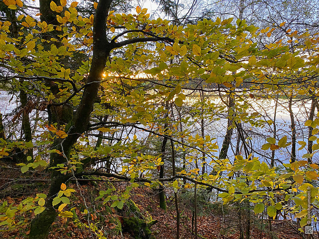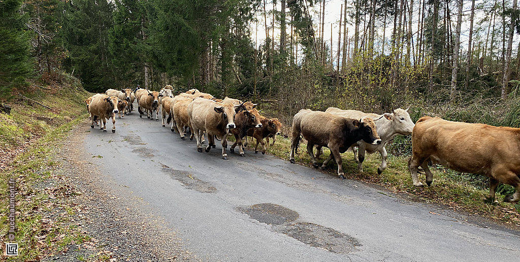 Ensuite, beaucoup d’arbres étant tombés en travers du chemin nous le rendent invisible et donc impraticable… On devra errer un petit moment en cherchant le passage le moins compliqué dans la végétation du sous-bois. Merci au GPS qui nous permit à tout moment de savoir où nous étions et donc comment regagner le moins lentement possible le chemin là où il redevenait praticable, en fait fait le long de la rive (du Lac de la Crégut, cette fois).