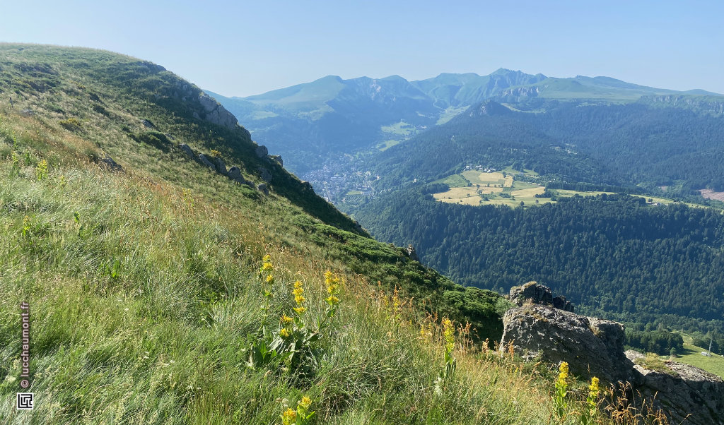 Ensuite, nous sommes montés sur le Puy Gros, lequel domine la vallée de la Dordogne : de là, on voit bien d’abord La Bourboule…