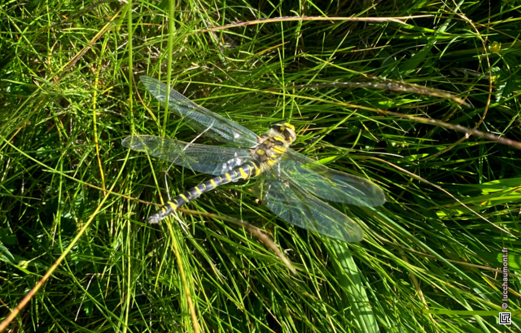 Un grande libellule nous tourne brièvement autour, se pose et reste tranquille suffisamment longtemps pour être photographiée de près.