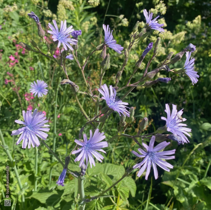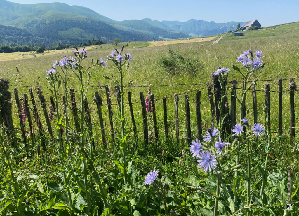 Un dernier regard en direction du Sancy. Au premier plan, des laitues des Alpes, dont les fleurs ressemblent étrangement à celles de la chicorée sauvage.