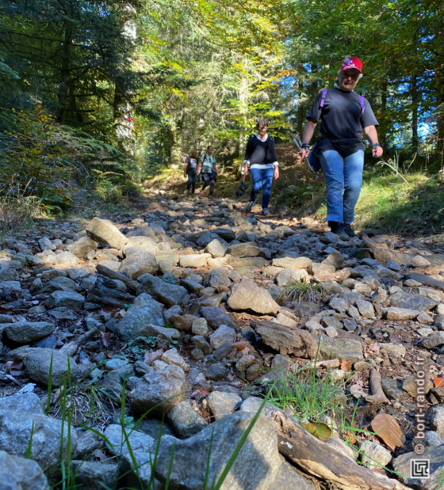Par endroits la surface du chemin est un lit de cailloux assez ronds et mobiles, sur lesquels chaque pas peut rouler :