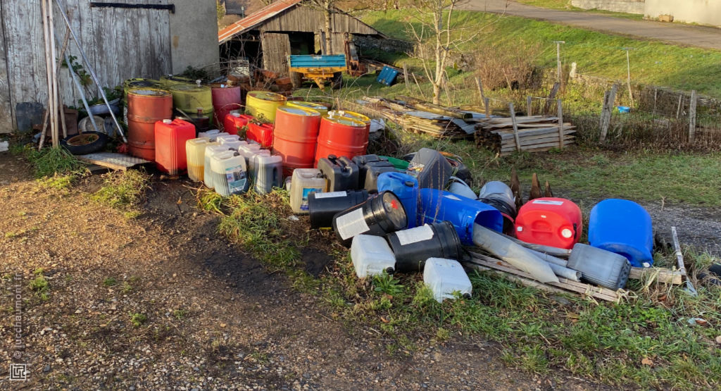 Un des problèmes de l’agriculture actuelle : l’usage de produits chimiques de toutes sortes génére des stocks de déchets de conteneurs :