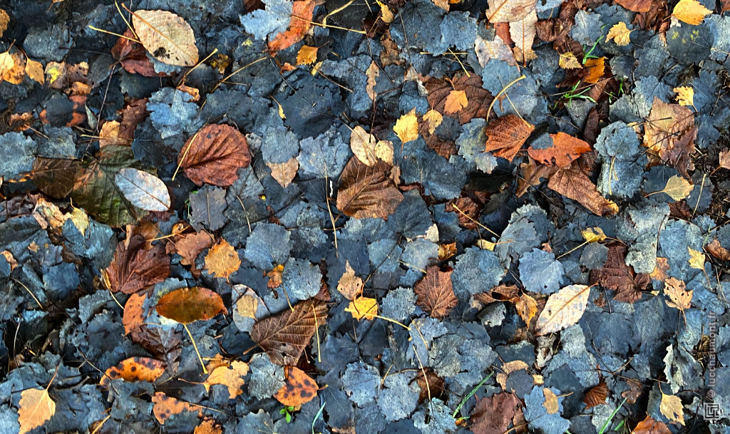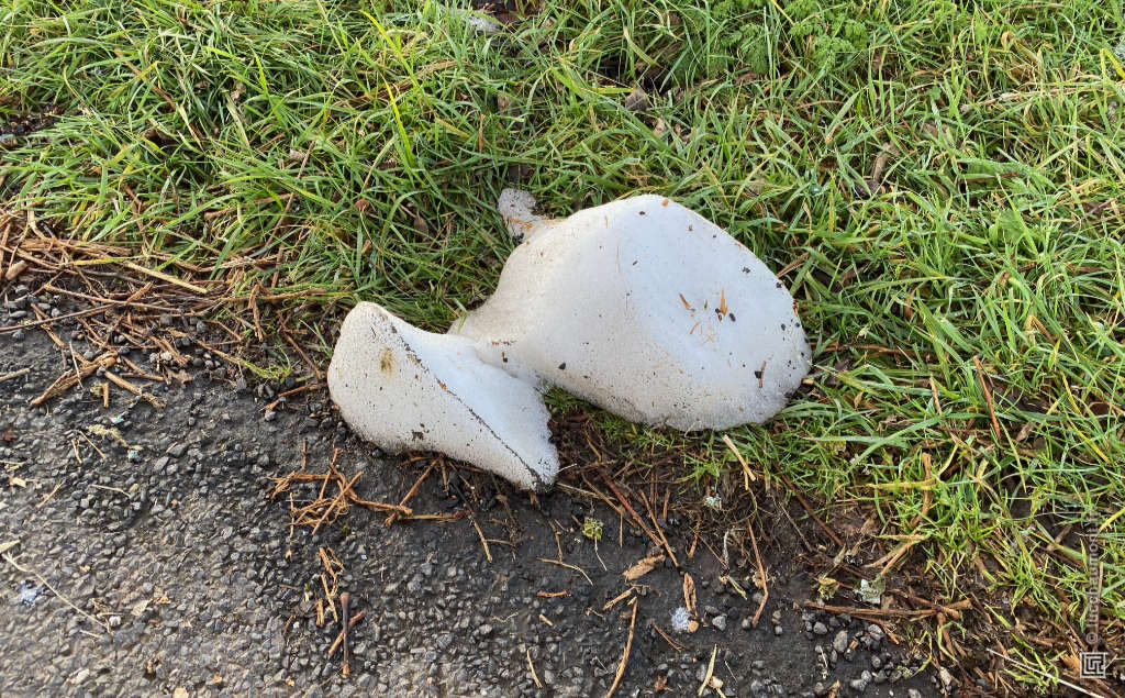 Couché sur le bord de la route, un modeste reliquat de la chute de neige récente fond doucement, comme un agneau endormi qui rétrécit progressivement :