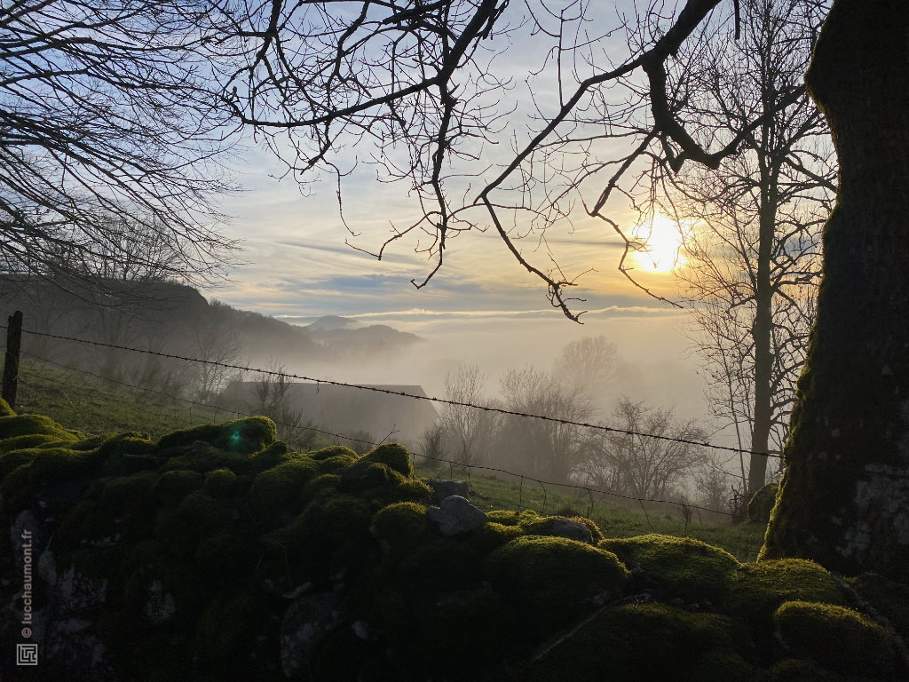 Près de Mont de Bélier, nous sommes à 900 m d’altitude et nous voyons au loin, la mer de nuages sur les vallées environnantes :