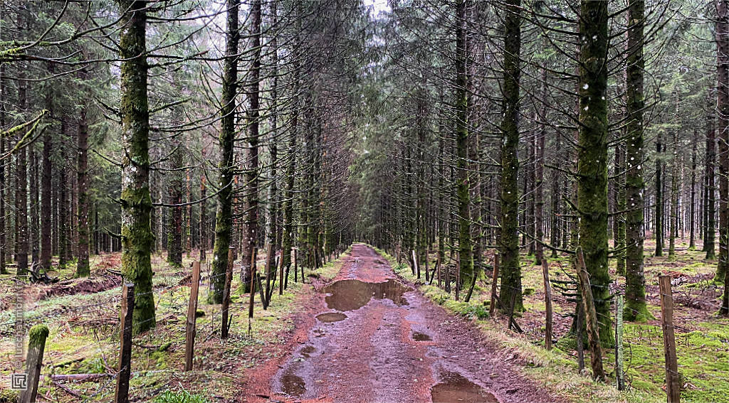 Passé le Col de la Sœur, le chemin traverse une de ces forêts où les arbres sont alignés, en attendant la coupe : forêt de pure exploitation, dite « jardinée » :