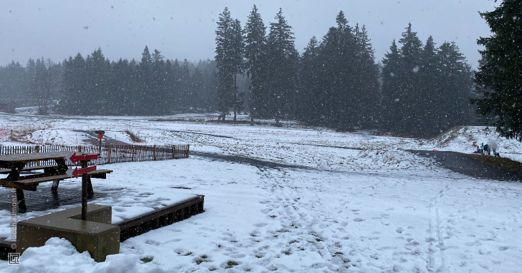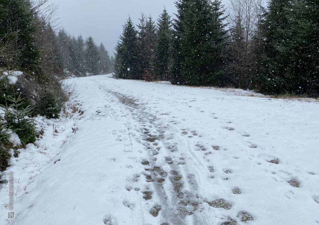 En terrain dégagé et à moindre altitude, la neige au sol devient plus rare :