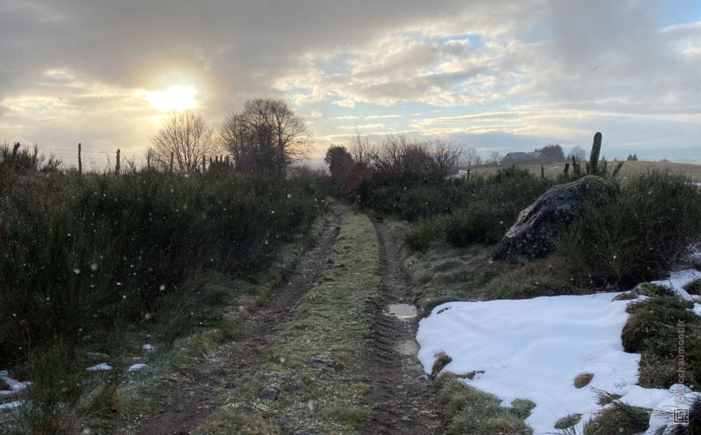 Il aura fallu attendre 13h00 pour démarrer cette « journée rando » car durant toute la matinée la pluie était là, et pas envie de se mouiller dès le départ alors qu’il ne fait pas chaud ! Donc sur une journée où le soleil se couche à 17h00, c’est un peu juste. Mais faisable. Pour preuve ici. Circuit de 17 km, au départ de Saint-Pardoux, village situé juste au Nord de La Tour d’Auvergne.