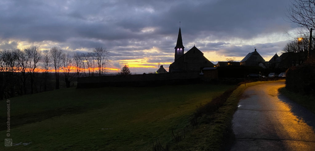 Du pied de la chapelle, on a un panorama intéressant sur le bourg. Par temps clair, on doit voir aussi de là les sommets du Cantal ?